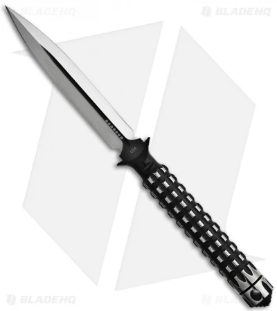 The A.D.O. (Alpha Detachment Operative) is an extraordinary fixed blade knife from Microtech. This Limited Edition ADO features a two-tone (satin/black) finished double-edge dagger blade (plain) and handle with a waffle-style texture. This knife follows the design of Chris Reeve fixed blades with a hollow handle, accessed by unscrewing the glass breaker tip. It is made from a solid billet of stainless steel. The A.D.O. includes a composite sheath with a spring loaded tab to secure knife and a 2″ steel clip for belt carry.
