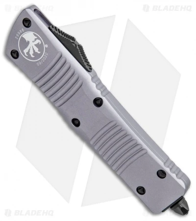 Microtech’s largest OTF production knife is named after the Troodon dinosaur. The Combat Troodon is the really large version of the popular Troodon. Despite the size, the handle feels slim and comfortable. The double-edged dagger style blade is both attractive and functional and the action is Microtech excellent.
