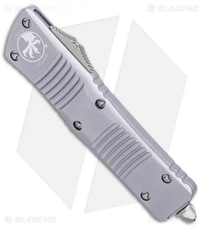 Microtech’s largest OTF production knife is named after the Troodon dinosaur. The Combat Troodon is the really large version of the popular Troodon. Despite the size, the handle feels slim and comfortable. The action is excellent.