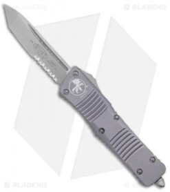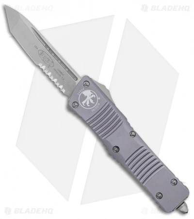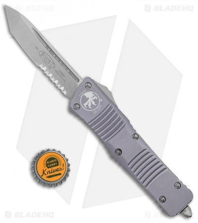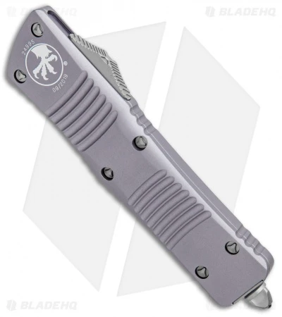 Microtech’s largest OTF production knife is named after the Troodon dinosaur. The Combat Troodon is the really large version of the popular Troodon. Despite the size the handle feels slim and comfortable. The single edged tanto style blade is both attractive and functional and the action is Microtech excellent.