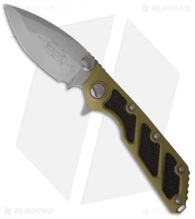 The Microtech D.O.C. Flipper is a manual action folder from Microtech that harnesses the design genius of Anthony Marfione and Mick Strider. It features a green anodized 6061-T6 aluminum handle with traction inserts. The blade is a spear point style with unique bevels that put more steel at the tip. This knife opens using the flipper and feels comfortable in grip with an index choil below and jimping up top.