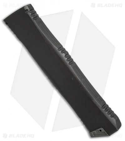 This Exodus knife has a stonewashed tanto blade and a black anodized aluminum handle that features a bead blast finished firing button, safety, charging handle and hardware.