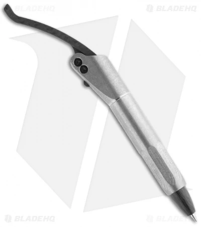 The Siphon is a unique folding or lever-action pen and a stylish writing instrument from Microtech. The pocket clip unfolds and the pen tip is revealed. Made of stainless steel and fitted with a black Pilot ink gel cartridge (replaceable).