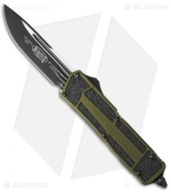 This Scarab has a two-tone black/satin finished drop point blade with a plain cutting edge. The OD green anodized 6061-T6 aluminum handle has grip inserts on front and back. Hardware, pocket clip and glass breaker are black finished.