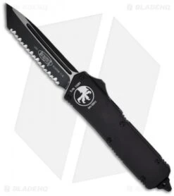 The Microtech Scarab is perhaps the mother of all out-the-front automatic knives. The Scarab is double action meaning it fires both out and in via the slide button located on the right side of the knife. Action, lock-up and quality are all top-notch Microtech.