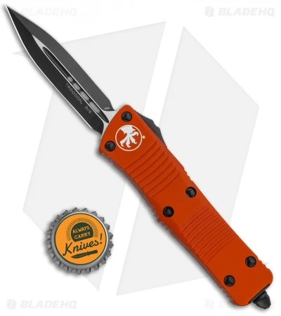 This version of the Troodon has handles that are Orange anodized T-6 aluminum with grooves for added grip-ability. The spearpoint double edged blade is CTS-204P steel and Black finished. The knife includes a deep carry pocket clip and a glass breaker.