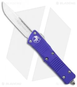 This model of the Microtech Troodon comes with a satin blade and a purple aluminum handle with bead blasted hardware.