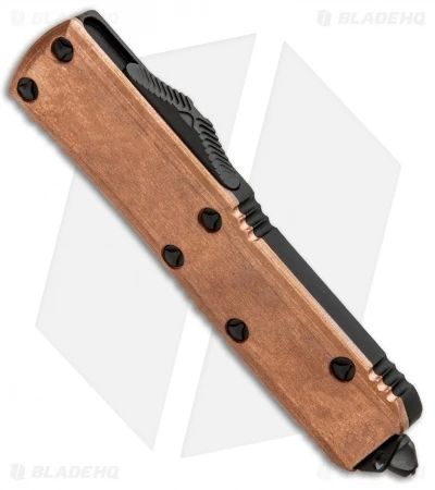 This UTX-85 has a two-tone drop point blade and a copper front scale and is outfitted with black finished hardware, pocket clip, and glass breaker tip.